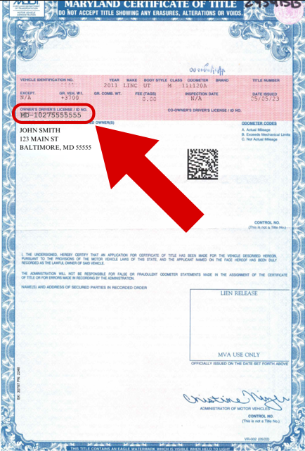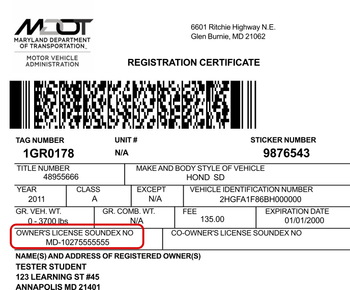 - Maryland Car Registration or Title - If you have a car registered in Maryland under your name, you can find the Customer ID number on the title or registration card. It may also be labeled as Driver's License number, ID number, or Soundex number.
